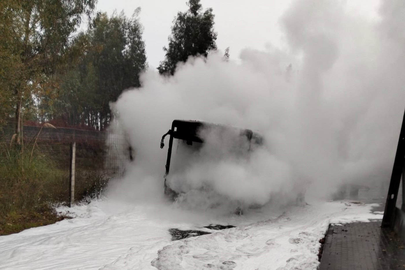 Autocarro dos TUB totalmente consumido pelas chamas esta 2ª feira